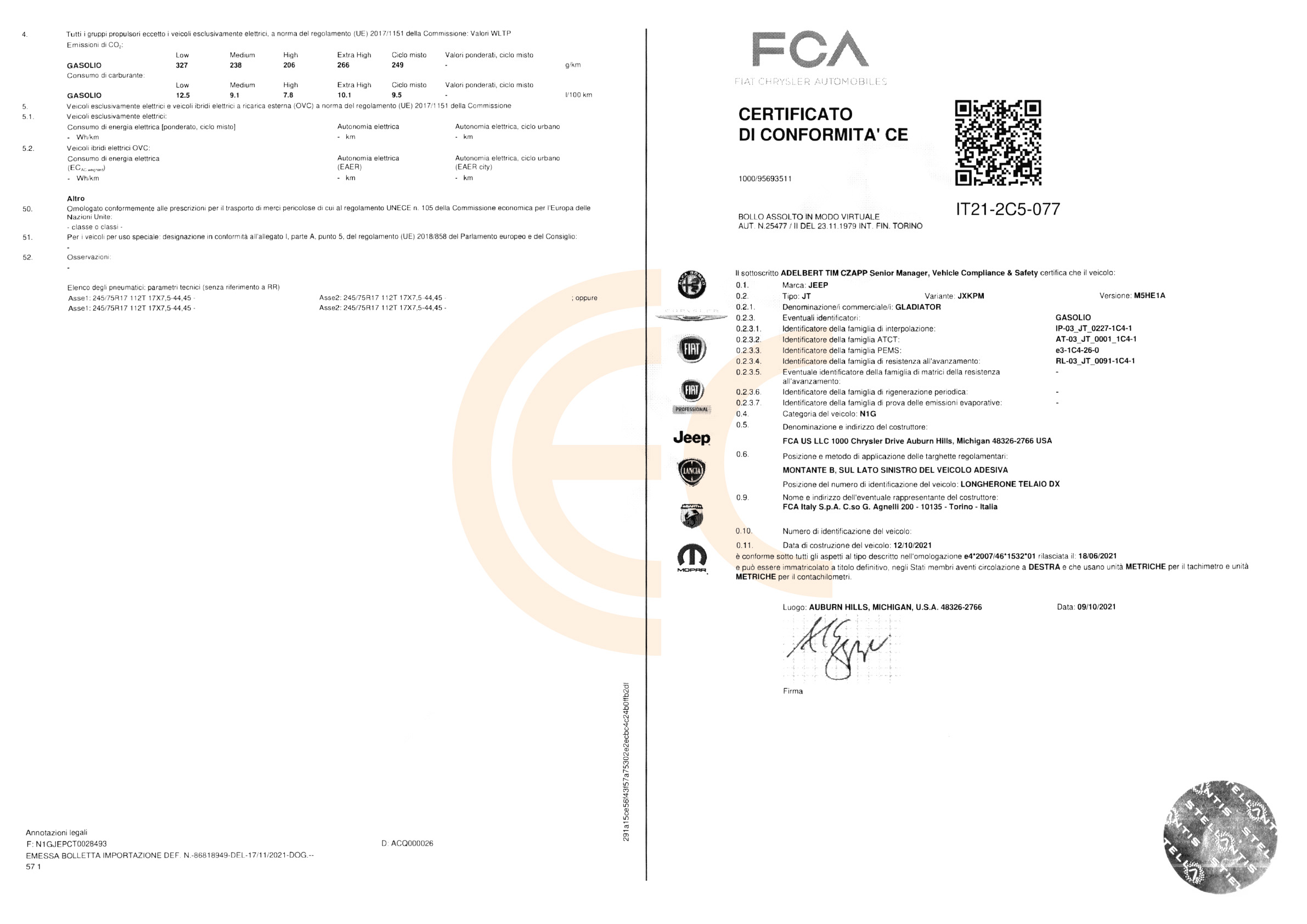 Get your official, authentic JEEP Certificate of Conformity (COC), recognized across all EU countries. This document proves your vehicle meets EU regulations and is required for registration or import in most European states. Issued by JEEP accepted by all authorities.